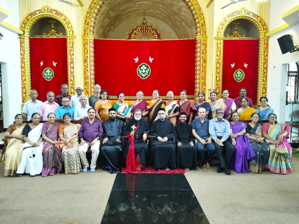 The Elders’ forum members at Muvattupuzha Cathedral Parish meet on Fridays every week regularly at 10 am for 2 hours at the church for singing devotional songs, intercessory prayers and bible study or reflections led by the respected vicars. Members are paying visits and having fellowship with those who are confined to their homes due to the natural weariness and illness of old age along with the respected Vicars of the Church.
